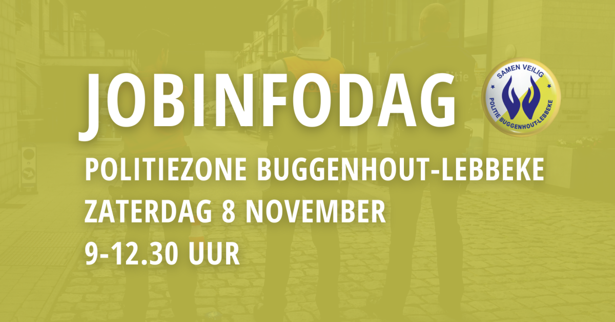 Ben jij klaar voor een boeiende job vol afwisseling en betekenis? Wij zijn voornamelijk op zoek naar inspecteurs. Kom naar de jobinfodag op zaterdag 8 november van 9 tot 12.30 u. en maak kennis met ons politiekorps. Welkom in het hoofdcommissariaat in Lebbeke, Leo Duboisstraat 44.